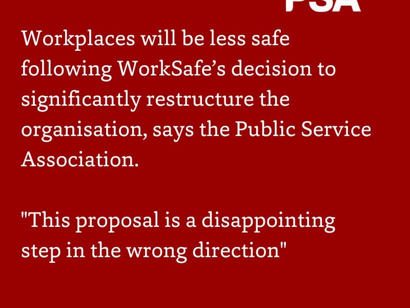 Workplaces will be less safe following WorkSafe’s decision to significantly restructure the organisation, says the Public Service Association.